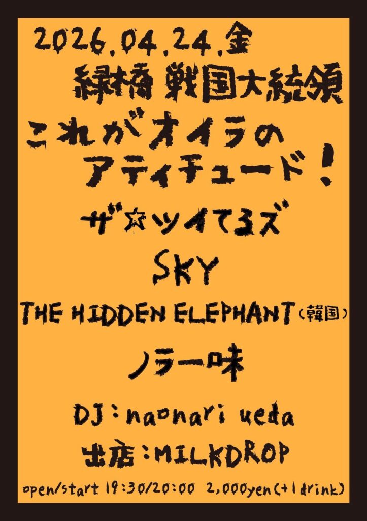 ADV ¥2,000/DOOR ¥2,500+1 Drink Fee